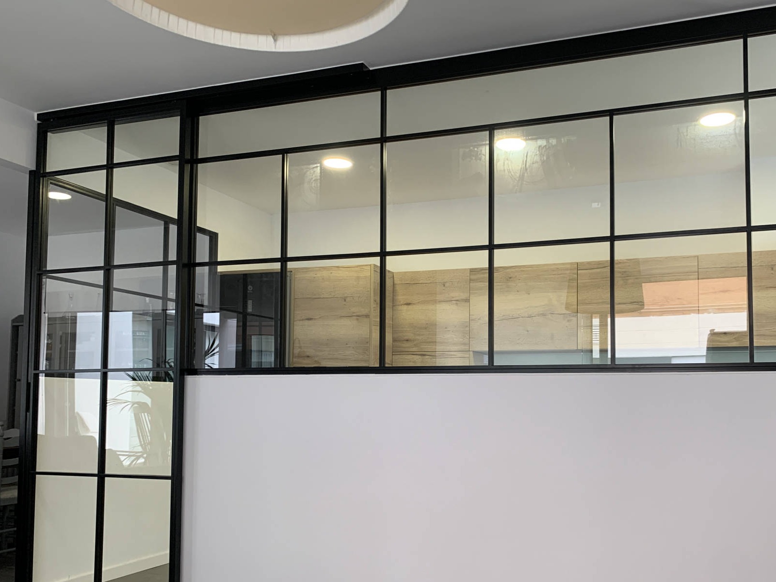 Las divisiones combinadas de metal y cristal permiten separar espacios manteniendo la luz natural.